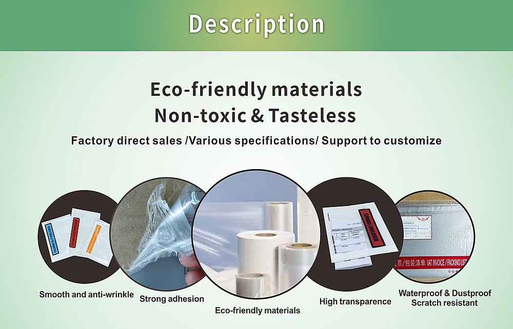 Packing List Envelope is made from Eco-friendly materials, smooth and anti-wrinkle, strong adhesion, high transparency, dustproof and waterproof!