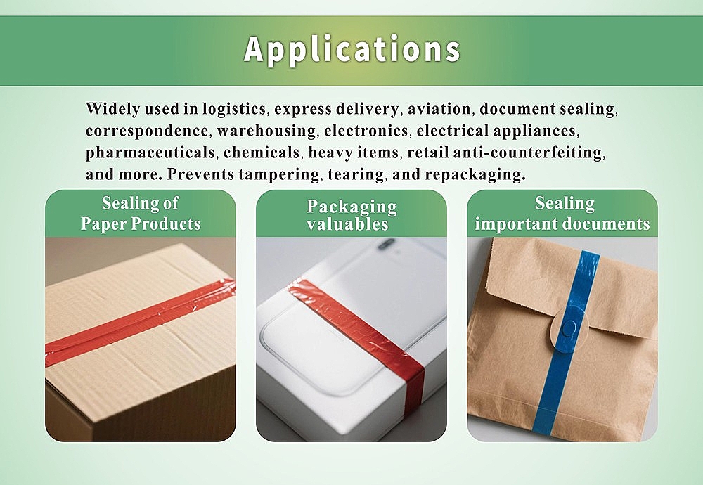 Paper Product Security Tapes are often used to detect tampering of the access points of paper products. It will leave tamper evident characters on the surface.